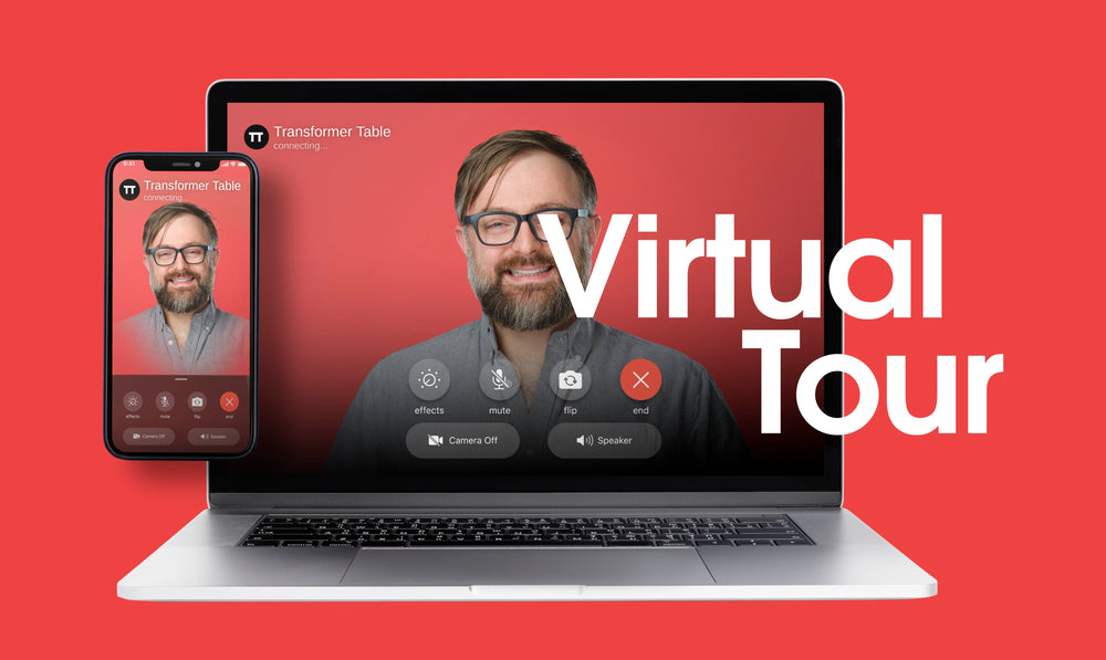 Book a 1-on-1 session with one of our Transformer Table Specialists, where you'll have the chance to learn more about Transformer Table products, receive a live demo, and ask any questions specific to your needs—all from the comfort of your own home!