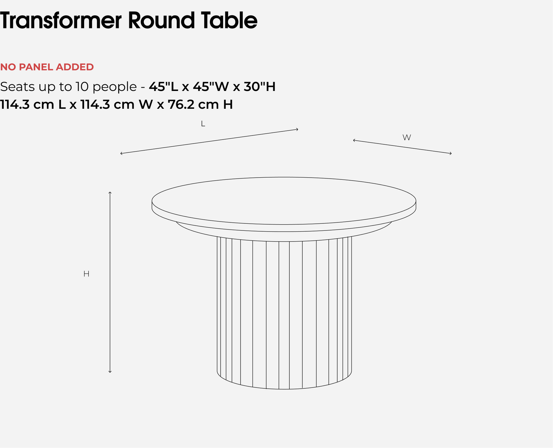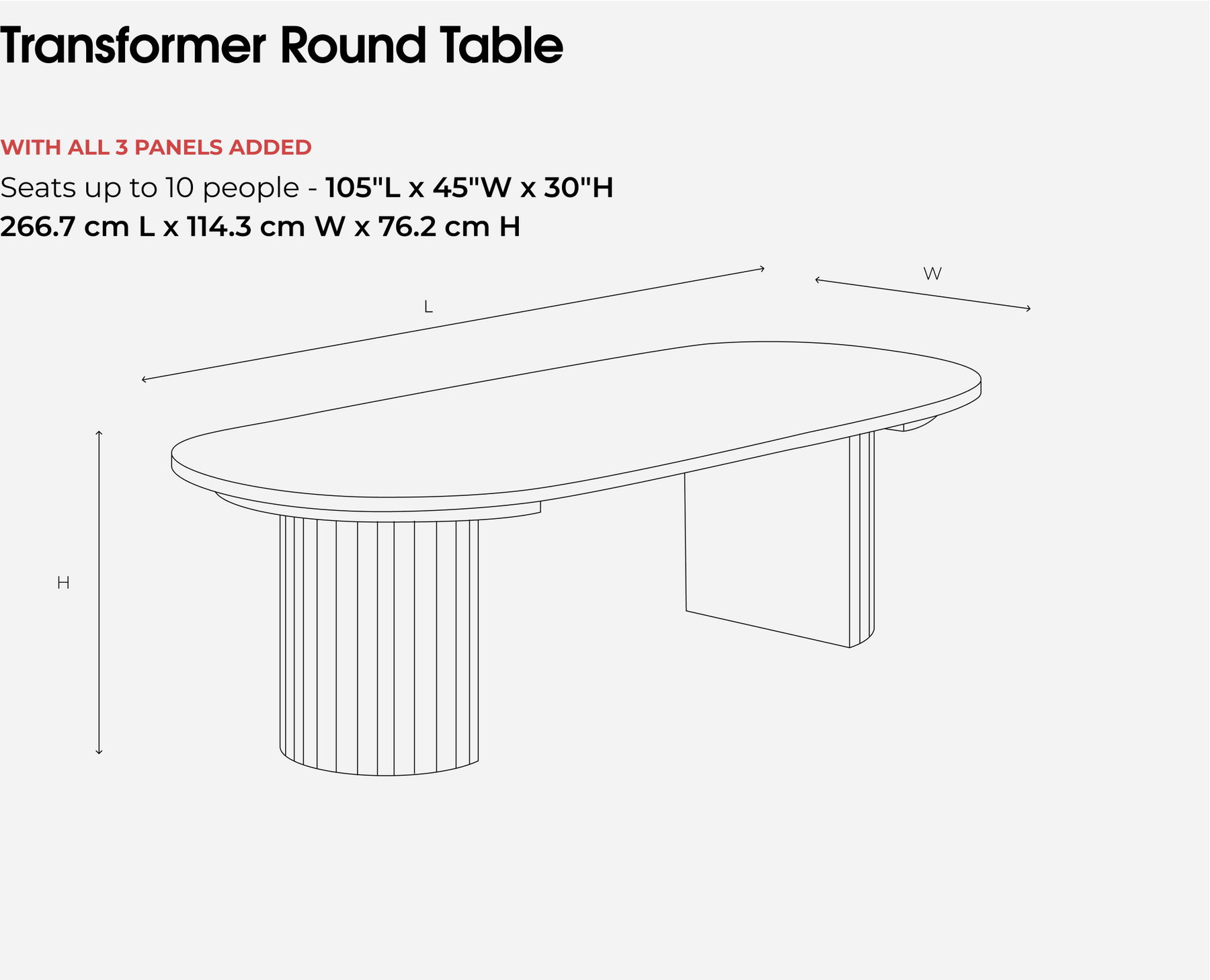 Easily transforms from a round to an oval table to seat between 4 and 10 people.