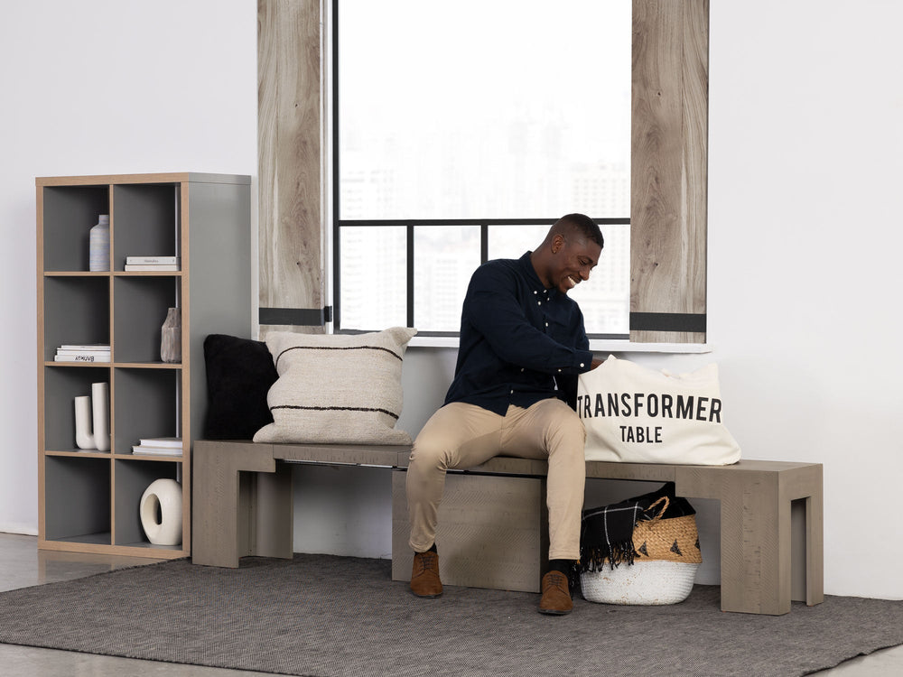 I just recently received the transformer table and 2 benches that I ordered and I am in awe of the clever design! We have a small open concept cottage and do not need a table taking space on a daily basis. I came across the Transformer furniture and decided this is EXACTLY what we needed! At present the table and 1 bench are stacked against a wall as a decorative console table and the other bench is being used as an end table.